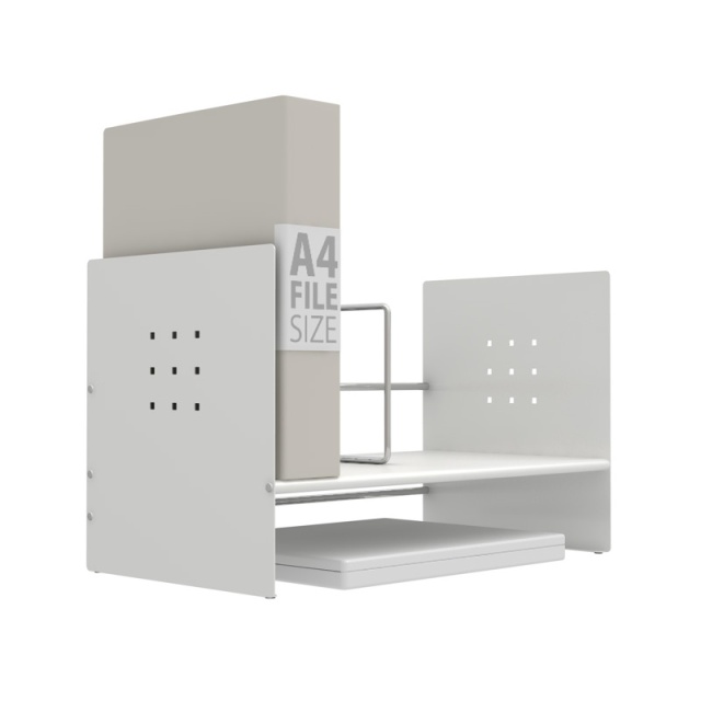 本体は強度のあるスチール製で、耐荷重は20kg。重たい本や書類、ファイル類もしっかり収納できます。