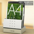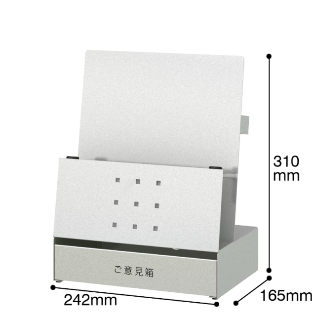 アンケート用紙が収納でき、記入に必要なペンやクリップボードも立てられるオールインワンのご意見箱です。