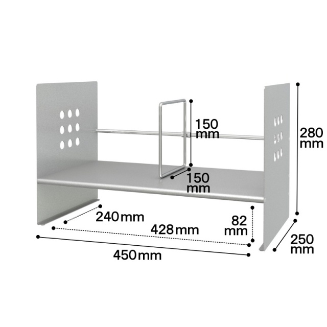 | 寸法 | 外寸:幅450×奥行250×高さ280mm 下段内寸:幅428×奥行240×高さ82mm |