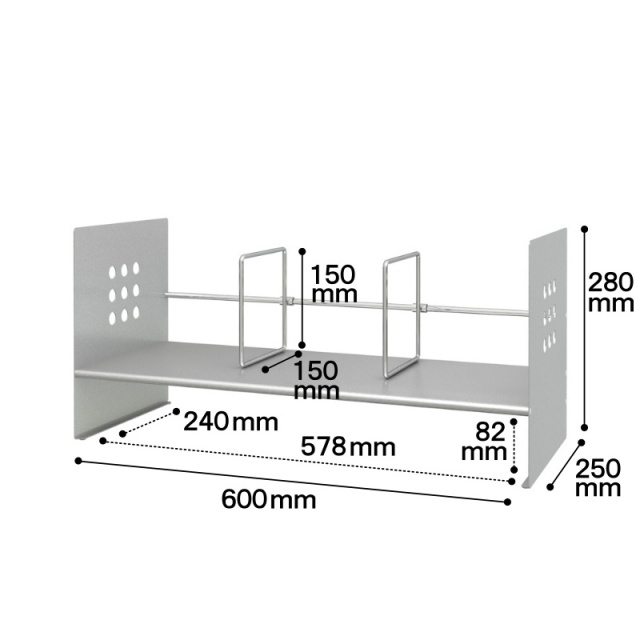 | 寸法 | 外寸:幅600×奥行250×高さ280mm 下段内寸:幅578×奥行240×高さ82mm |