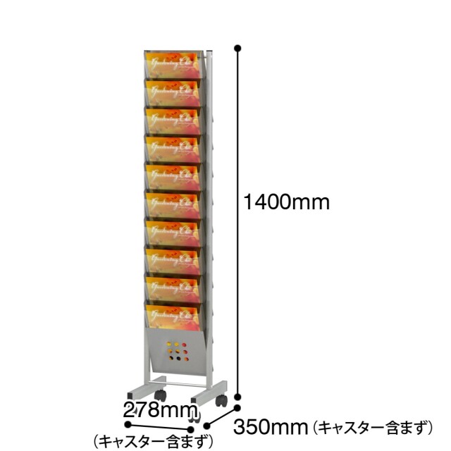 A4サイズのパンフレットを10段たっぷり収納できるため、多彩な資料を一度に展示可能。