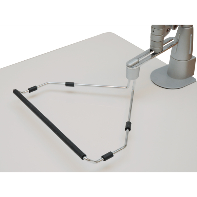 クランプで支柱を机の端にしっかり固定するので倒れることもなく、アームとトレーはそれぞれ水平回転するのでパソコンの向きを調整しやすくなっています。