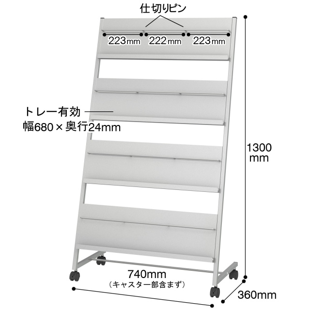 | 寸法 | 外寸:幅740×奥行360×高さ1300mm トレー内寸:幅680×奥行24mm |